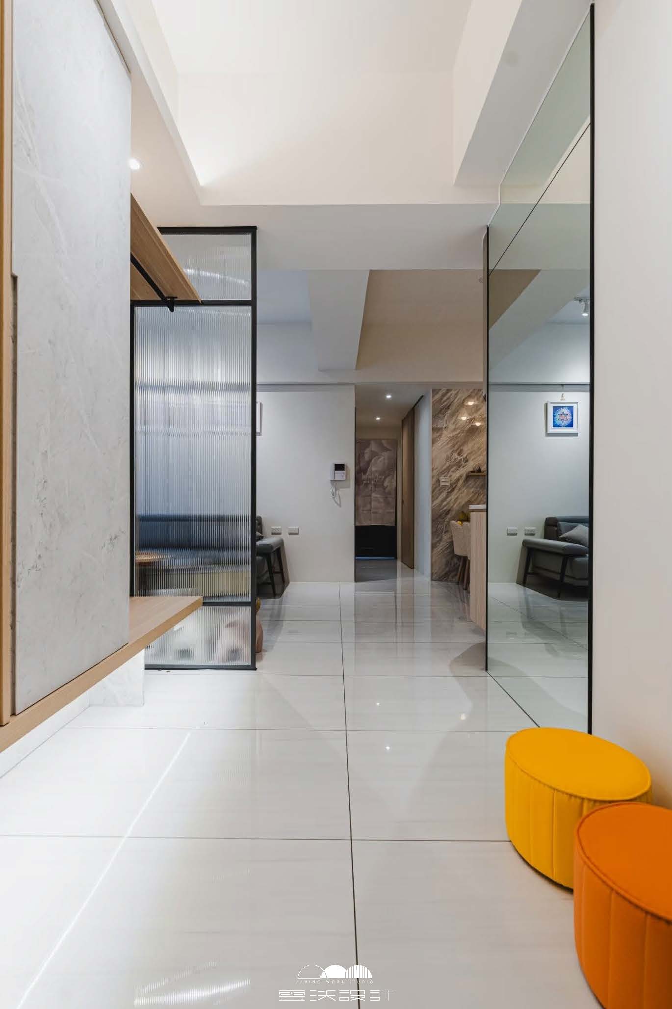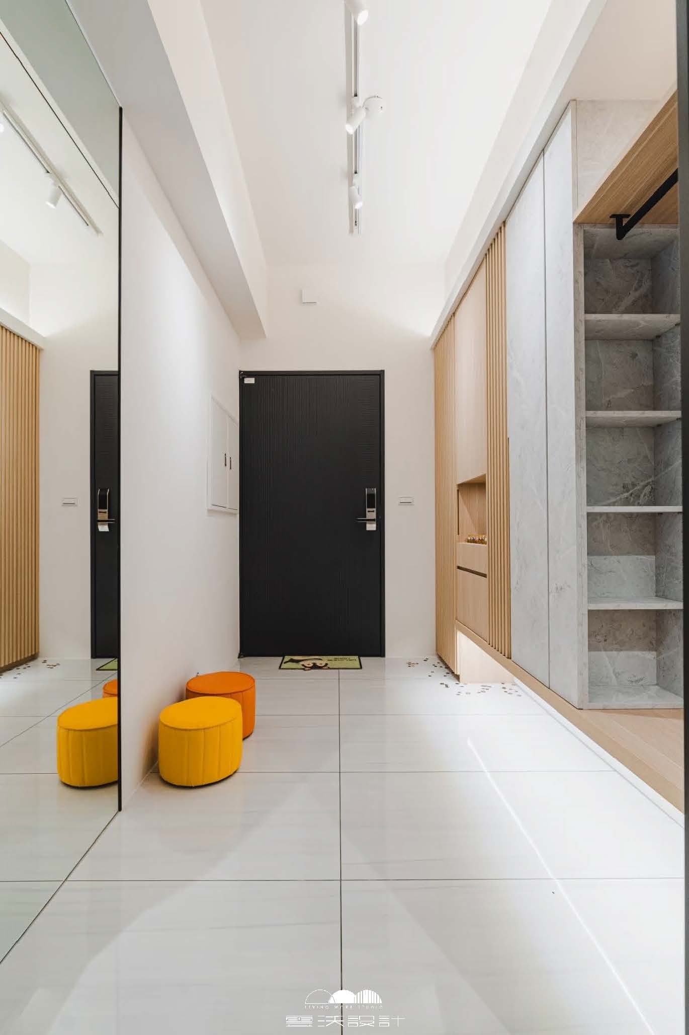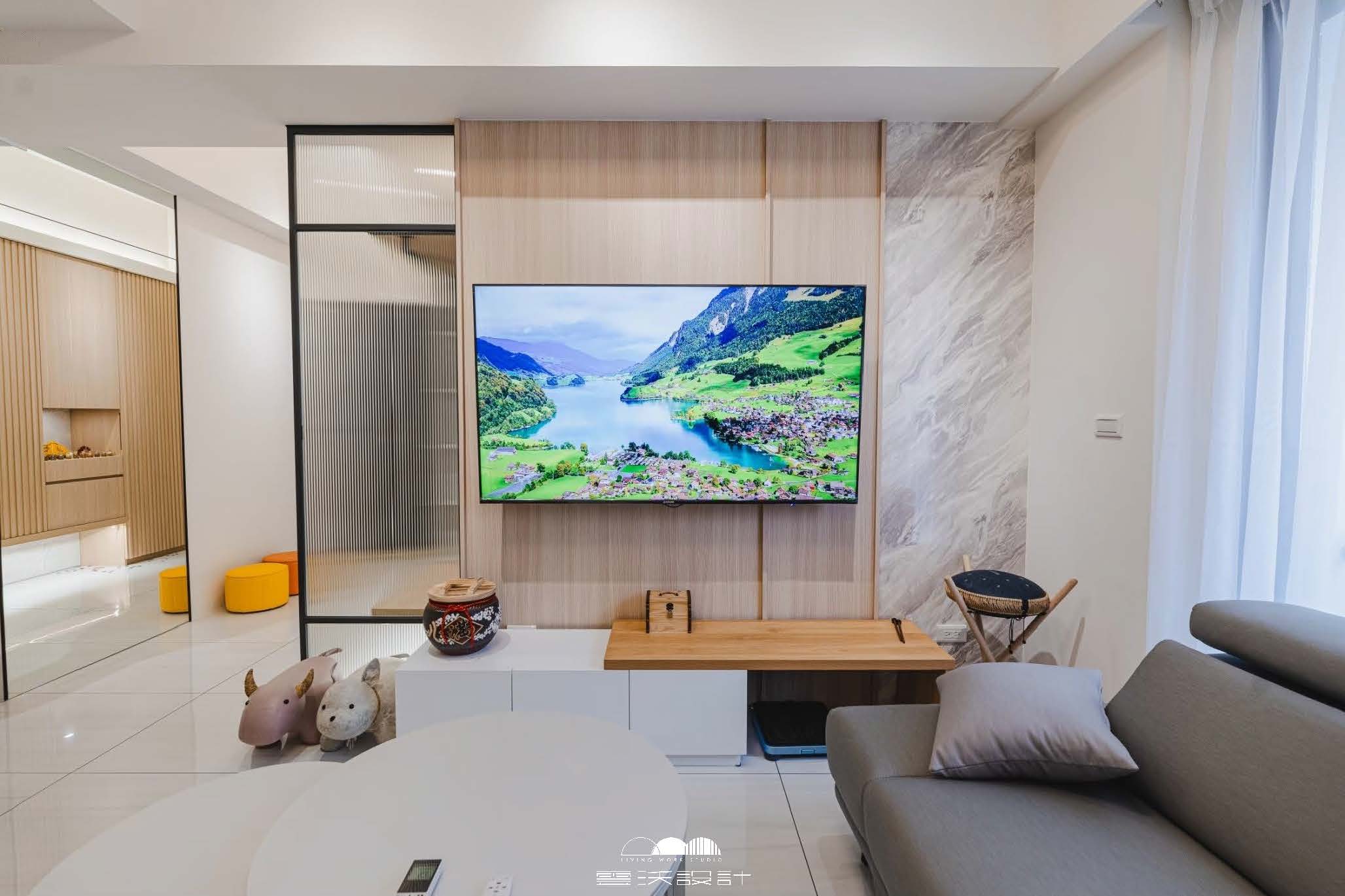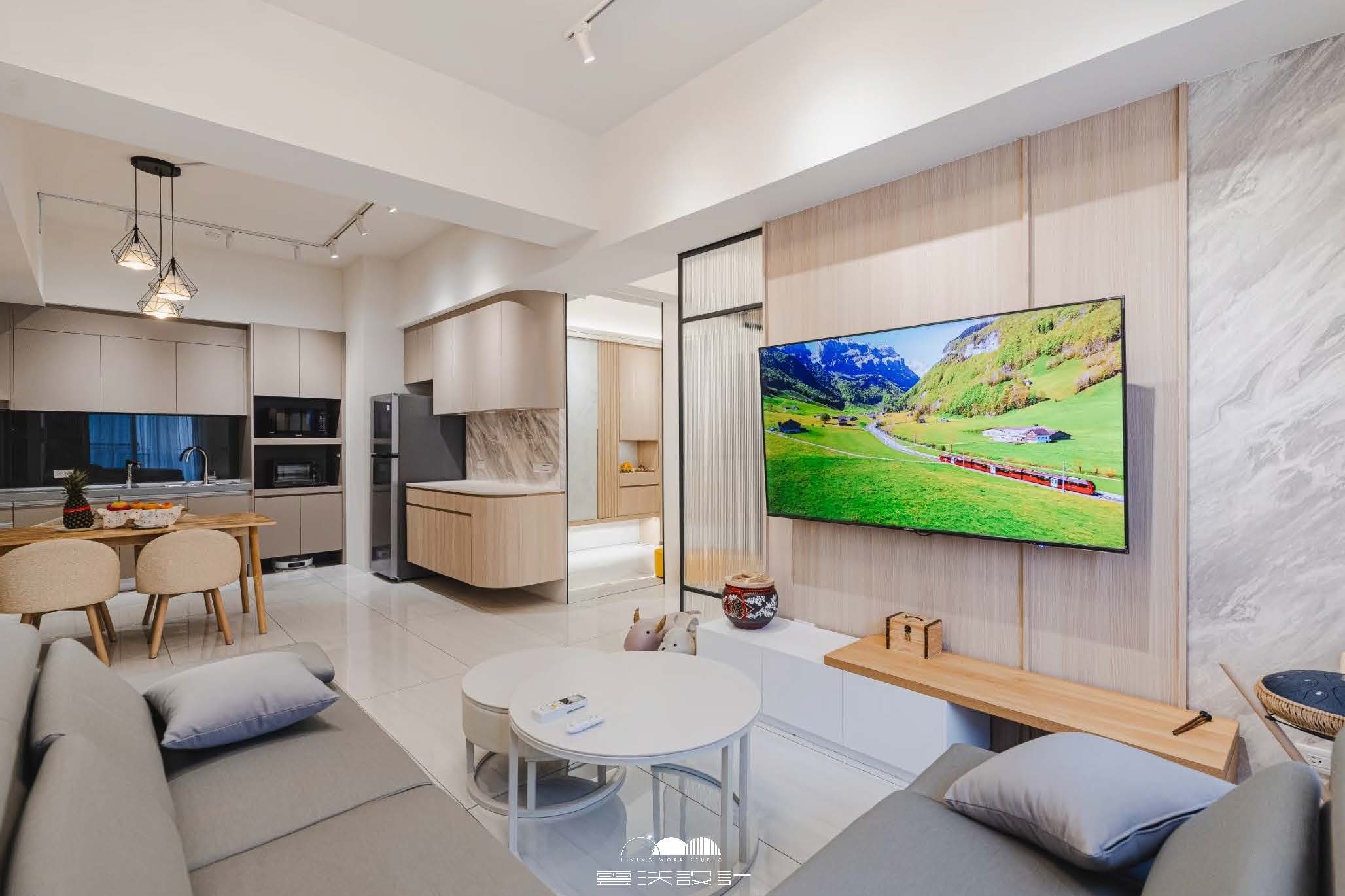 在這富有層次感的居住空間中,白色石材和溫潤的木紋彷彿在互相對話,創造出一種極具藝術氛圍的美感。白色石材散發著冷靜而高雅的氛圍,為空間帶來獨特的質感,而木紋的溫暖則以柔和的方式營造出居家的溫馨氛圍。