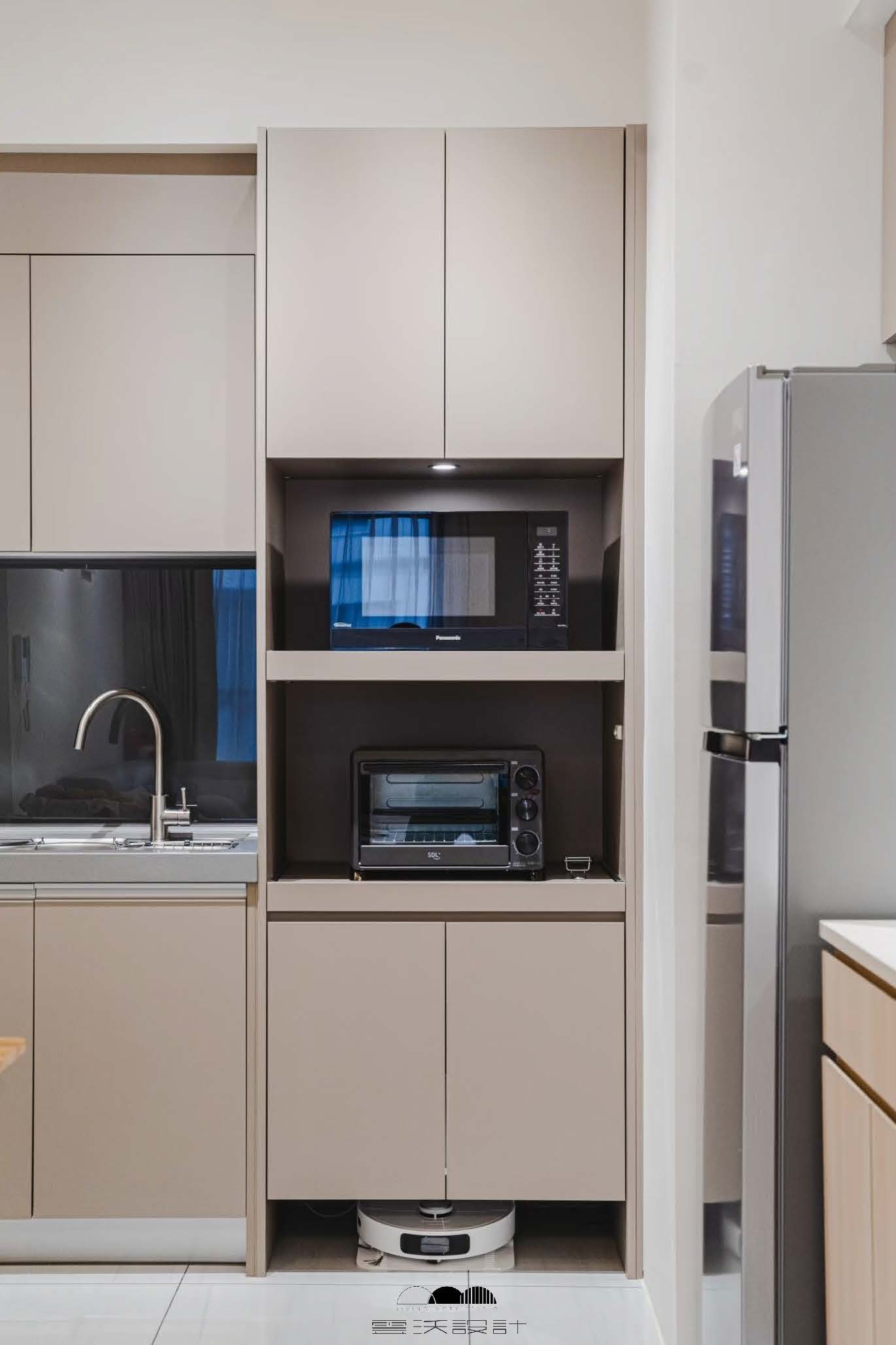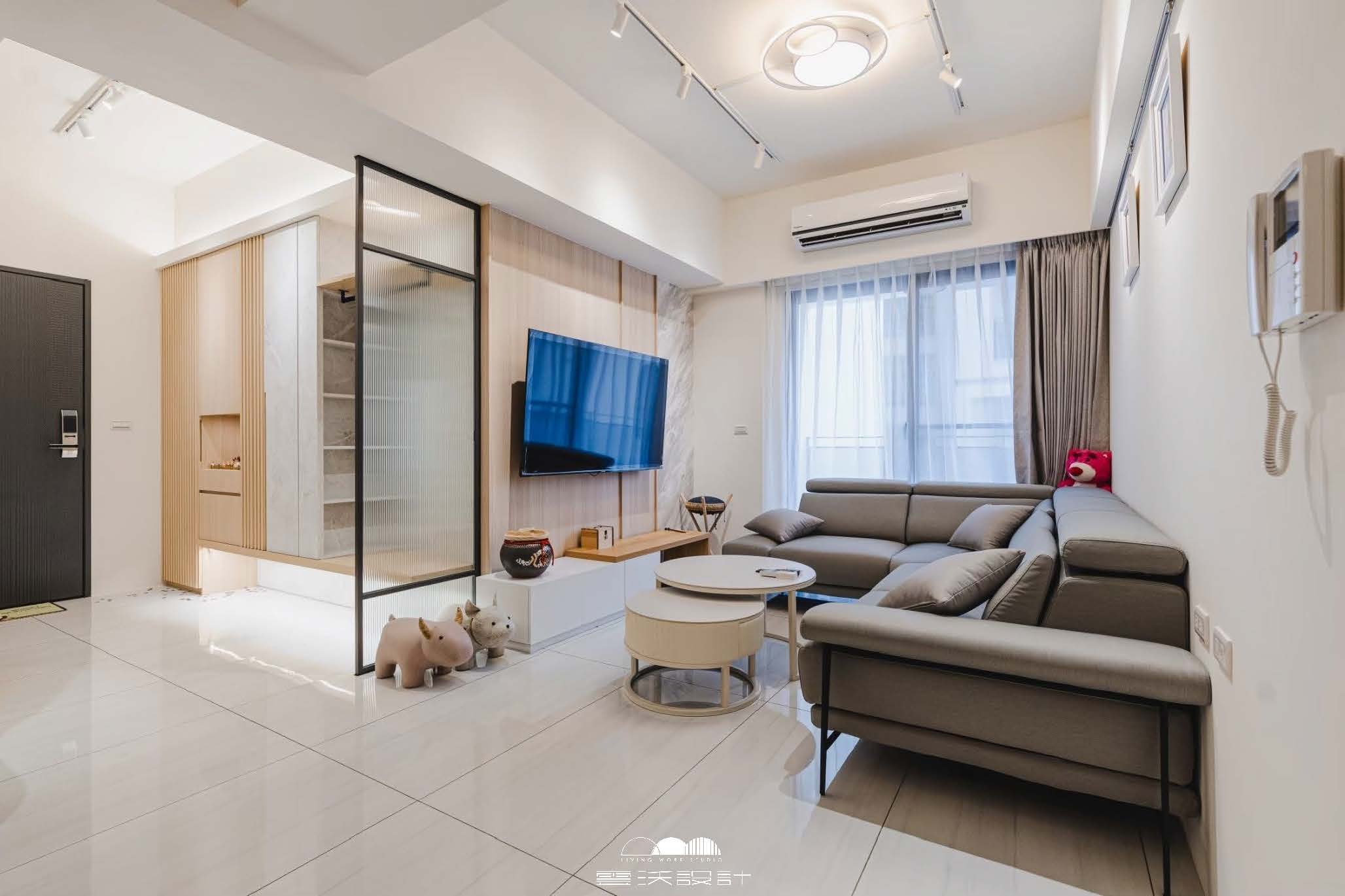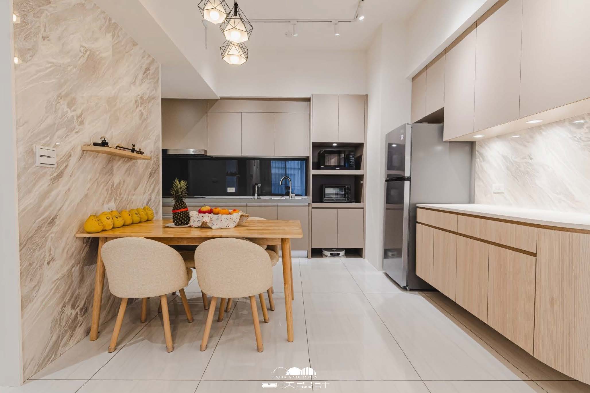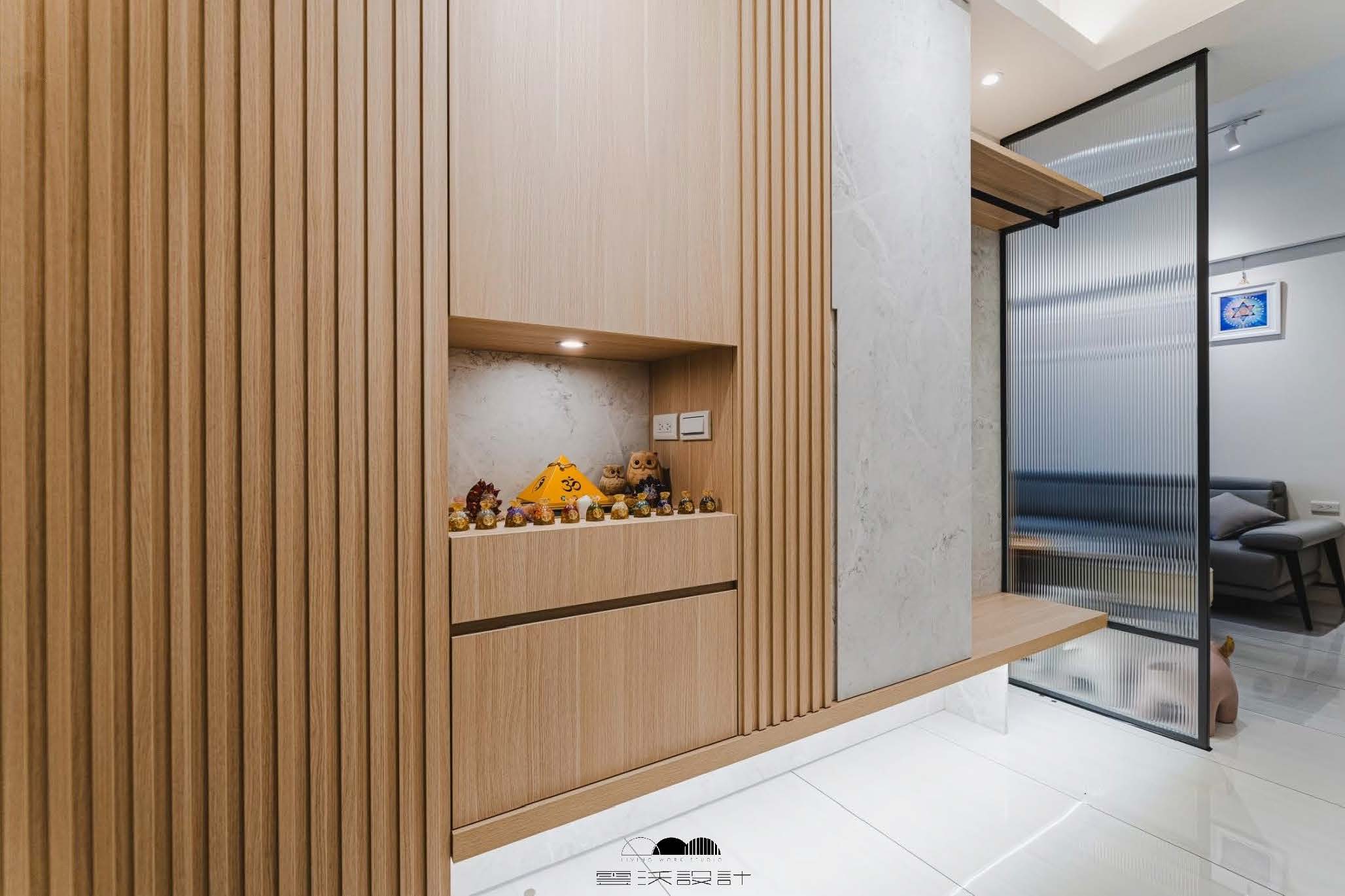 在這富有層次感的居住空間中,白色石材和溫潤的木紋彷彿在互相對話,創造出一種極具藝術氛圍的美感。白色石材散發著冷靜而高雅的氛圍,為空間帶來獨特的質感,而木紋的溫暖則以柔和的方式營造出居家的溫馨氛圍。